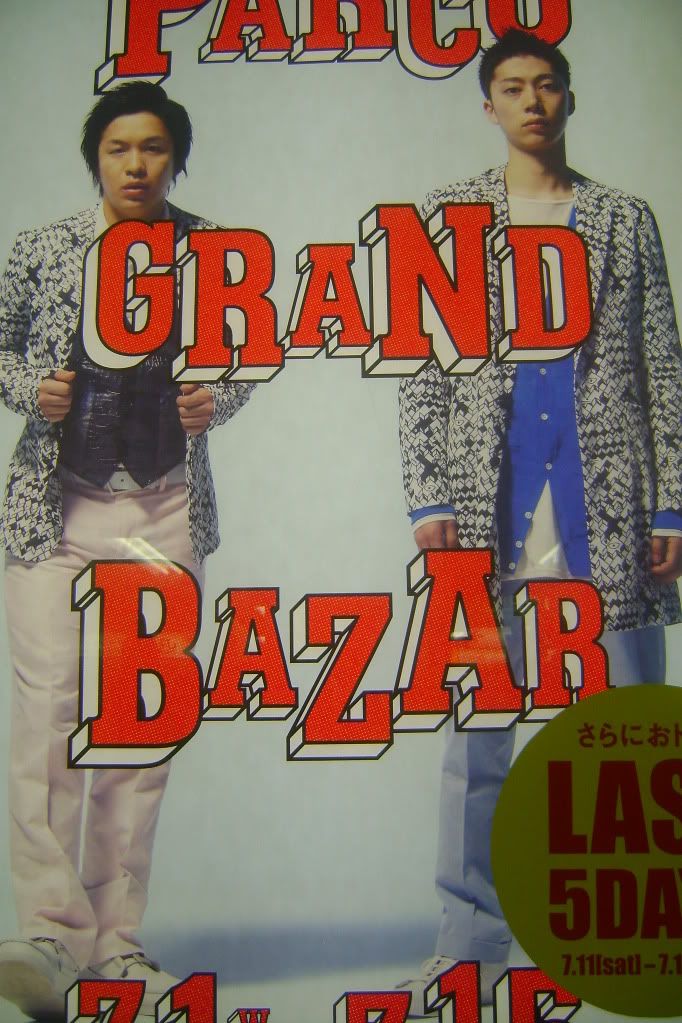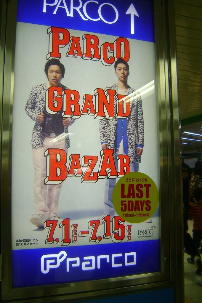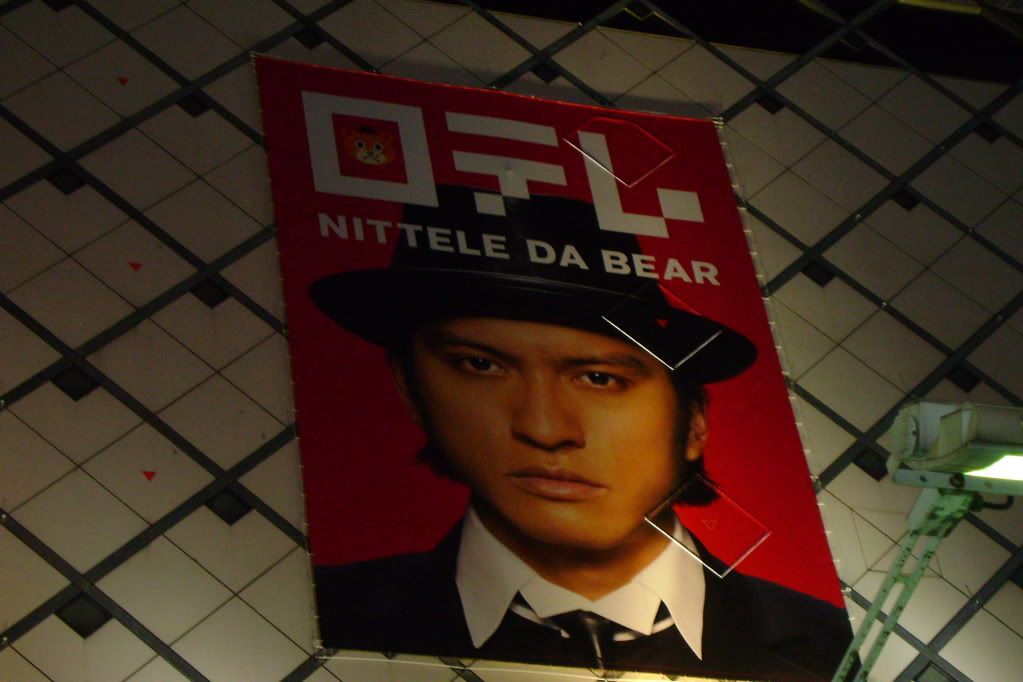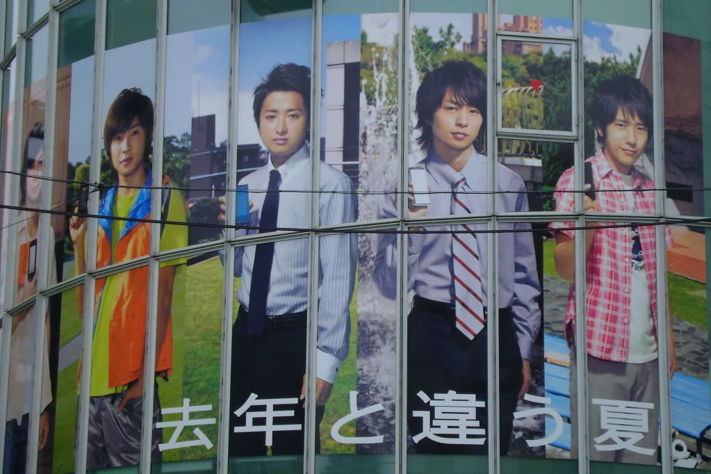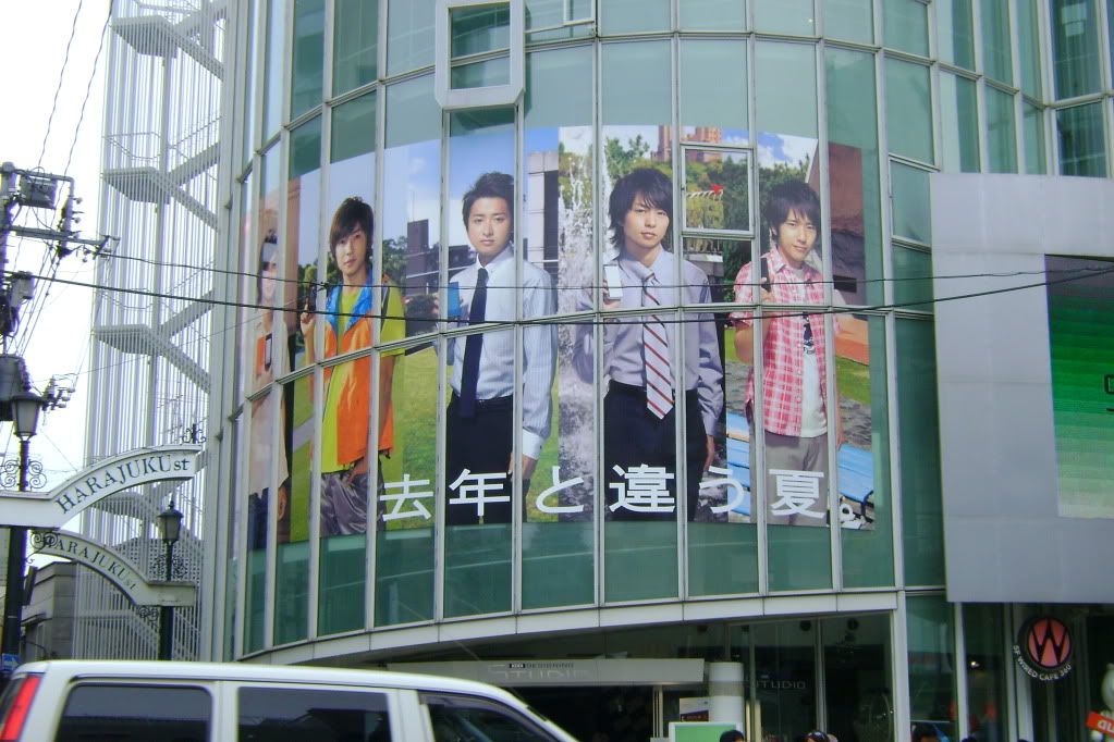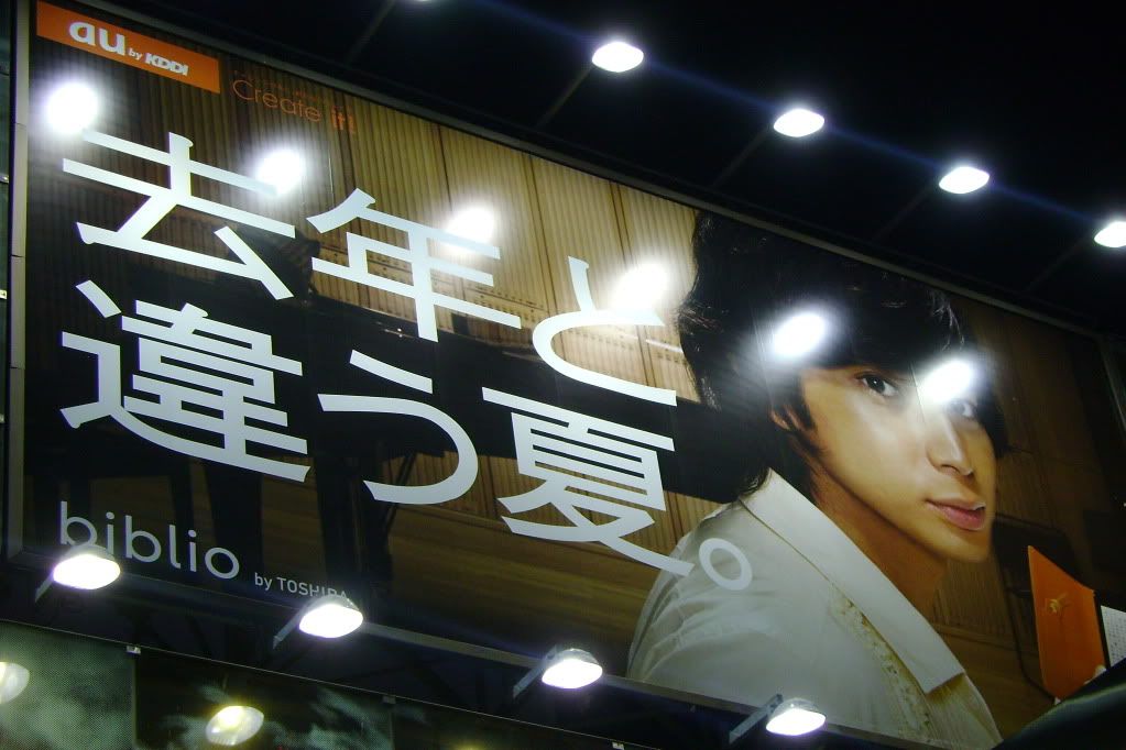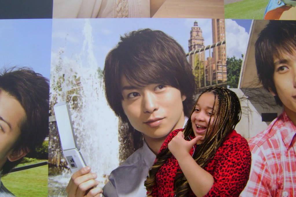 So I'm walking around going, "Waaaaai~! Sugoi, sugoi!" [Yaaaaaay! Awesome, awesome!] Then I walk up to this big billboard type thing and see Kirin (another conbi) and I'm all, "Kirin! Kirin desu!" [Kirin! I'm Kirin!] (One of their gags.) And the Japanese girls by me smiled like, "