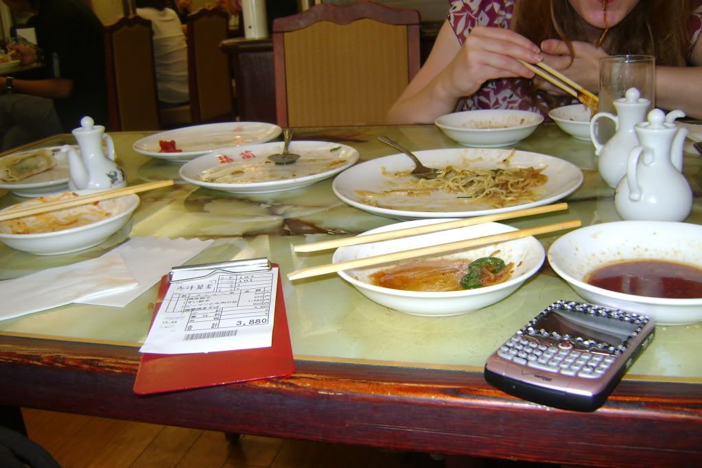 For dinner we had okonomiyaki! [A savory pancake of sorts, filled with either meat or seafood. Usually made in front of the customer on a hot plate.] I was so excited - it was my first time eating it! I know it started in Osaka and so I've been really adamant. "I don't want to eat okonomiyaki in Tokyo my first time!!! Its gotta be Osakan!"